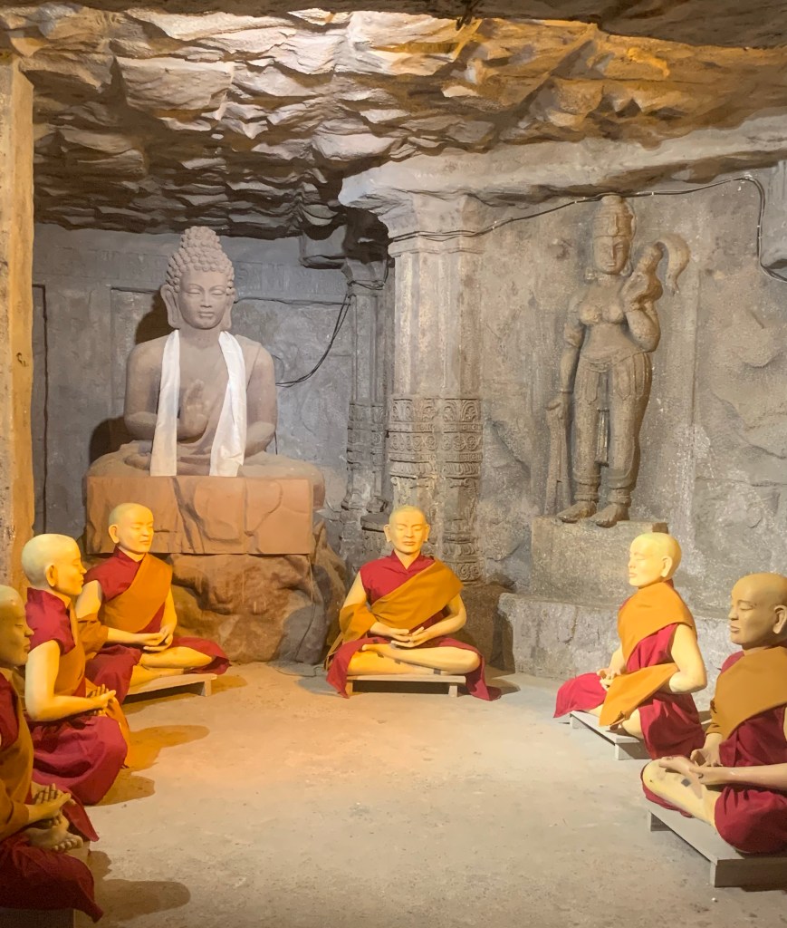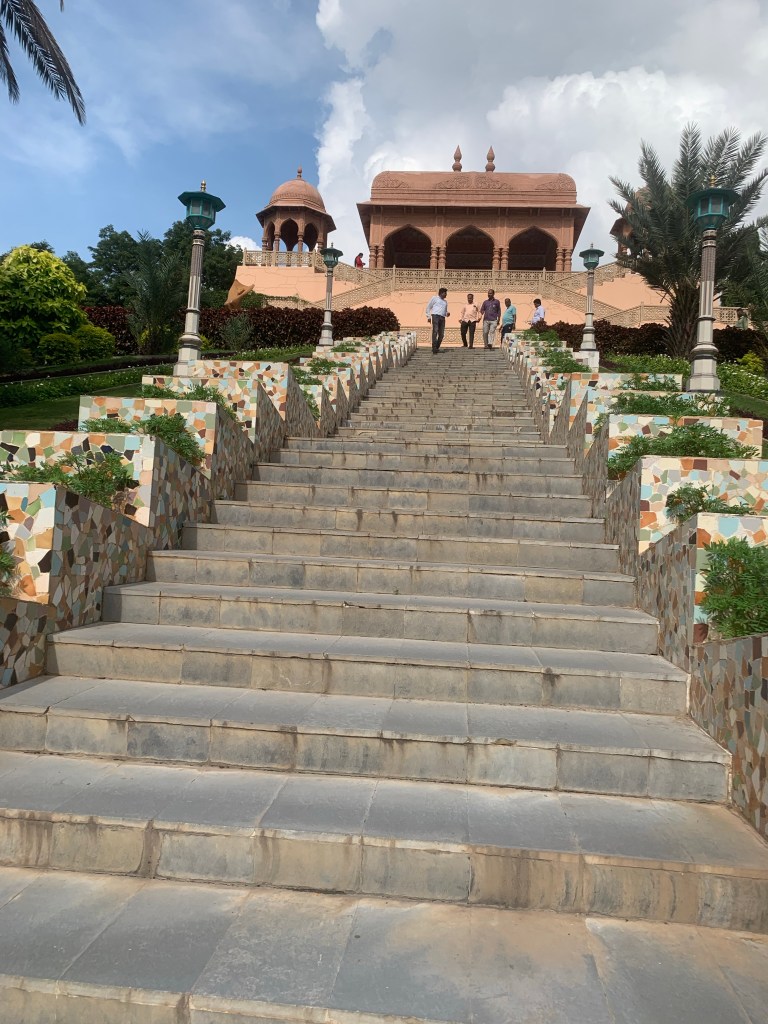 We then tried to find a good restaurant, but nothing was available nearby. So our driver suggested going towards the airport side. We agreed to that and saw the huge structure with a giant statue. That was the Statue of Equality, inaugurated by PM Modi a couple of months ago. In a complex of 75 acres, this 216 Feet statue of the 11th Century philosopher Saint Ramanujacharya was situated at Ranga Reddy District on the outskirts of Hyderabad. We were informed that this is the second-tallest sitting statue in the world Saint Ramanujam was a social Guru who promoted the idea of equality in all aspects of living including faith caste and creed. He worked tirelessly for the upliftment of people. The golden monument with a meditation hall was around the huge area and was surrounded by 108 Vishnu temples from all over India. In this complex, there are hospitals, schools and colleges, where the world’s only college campus for blind students is situated. Students who graduated from here acquire well-placed positions in IT companies. They even get admission to educational institutions gain jobs eventually as judges, and so on.