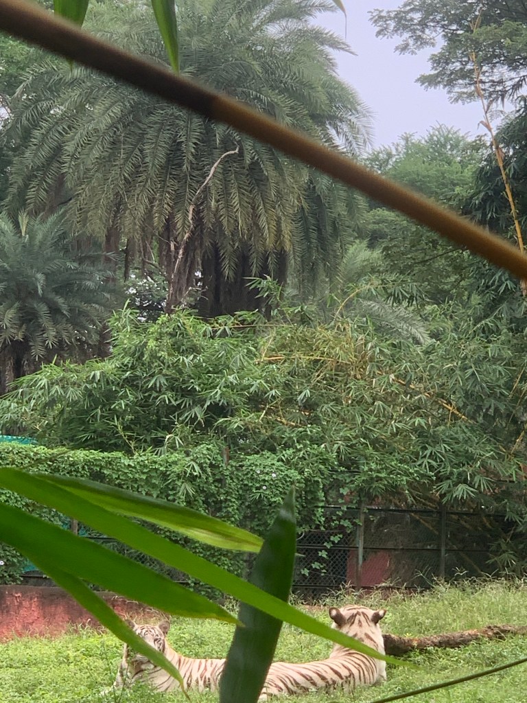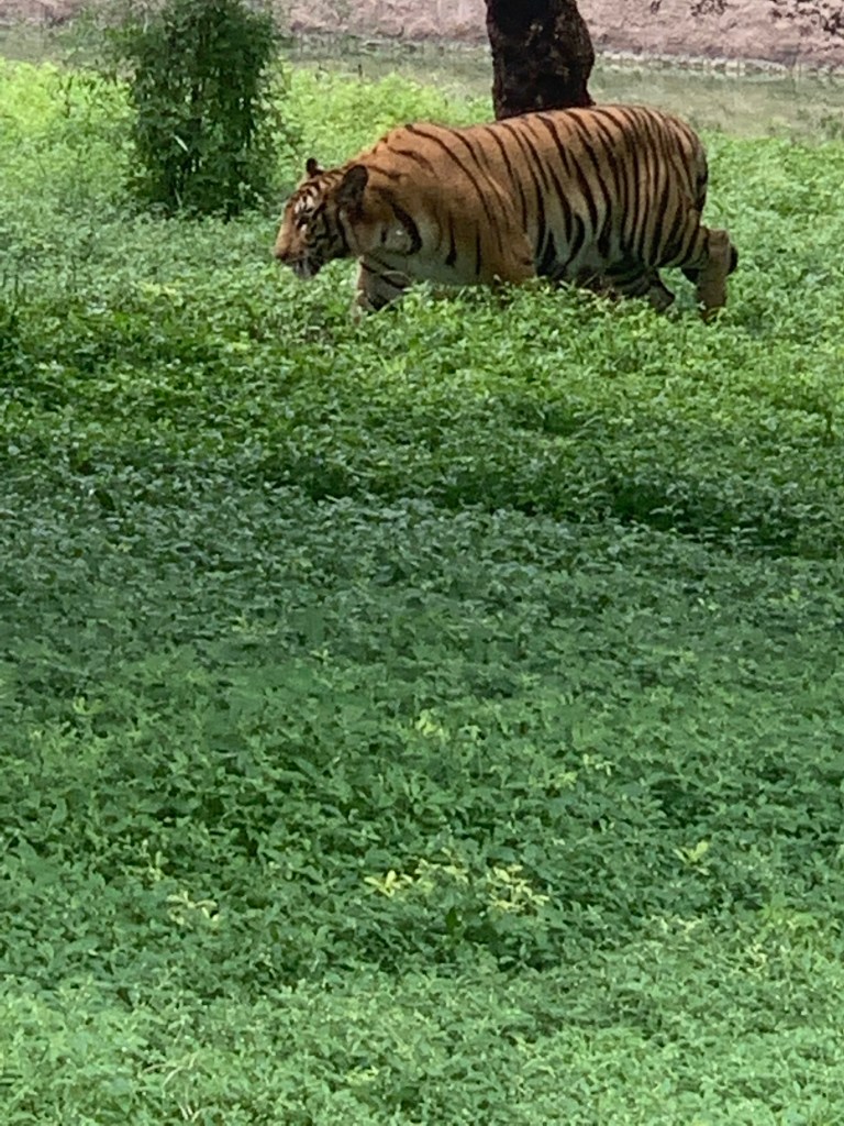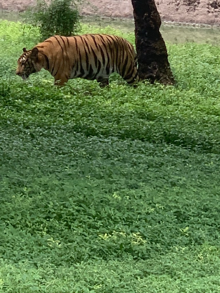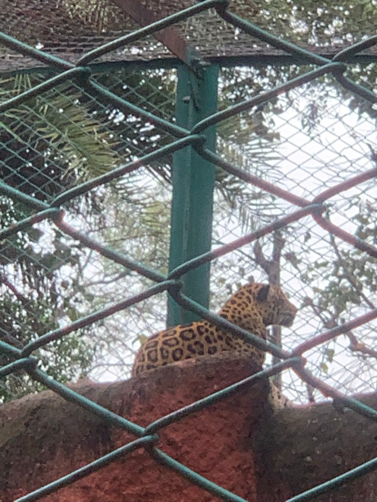 The next day, we were to return by night flight back to Bangalore and we had the full day to complete our planned itinerary. As per that, our visit was to the famous Charminar of Hyderabad. As that was a festival day and in anticipation of a huge crowd, we planned to visit early and look at the Charminar. Any later and the roads would then be closed and we would have had to walk a lot. We were lucky that we could park and had a view of the magnificent Charminar with its architectural splendor. It was cordoned off by police and we were not allowed to go to all the towers. Quickly we went around and took some snaps and left There were many vendors following us for buying small gift items from their shops. However, our driver managed to take us to the next destination i.e. The famous Jawaharlal Nehru National Park of Hyderabad. It covers a large area and once upon a time was considered one of the most beautiful parks with a train safari and many other games. But now most areas are restricted for maintenance and other activities. We were told that in the olden days, people visited and spent their daytime; which unfortunately we could not see. I felt the maintenance was also not to our satisfaction. But there were a good number of animals to be seen. As we have visited many national and international parks, this was not such an impressive view for us