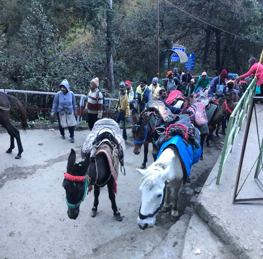 After the overnight stay at Haridwar, we started our journey to the first phase to Yamunotri about 10,800 feet above. The travel on the narrow and zigzag single road, where horses, dolleys and walking pilgrims are crowded just cannot be explained in words. Although, many including my wife went by Dolleys, where people were carried on wooden beds, I just could not appreciate this system. I preferred to travel on horseback by which frankly was more painful and risky. All along I was praying and meditating, which helped me to climb up without any hurdles. While my horse stopped for water, some young people from Gujarat, came and commenting that I resembled PM Modi and wanted to take photographs with me. I agreed with a condition that it should not be put in social media, which they accepted. Although, this was the first phase of our journey and gave a lot of pain in my legs and joints, the excitement of the journey, did not allow me to focus on anything but the travel experience. After a good darshan of the temple, we started descending and arrived back at our hotel for a hot, homely lunch. It was pretty cold and after the usual satsang in the evening, we took some much needed rest to get ready for the next day trip.