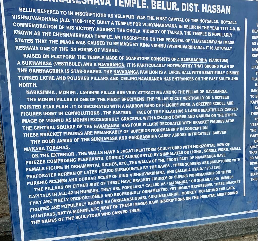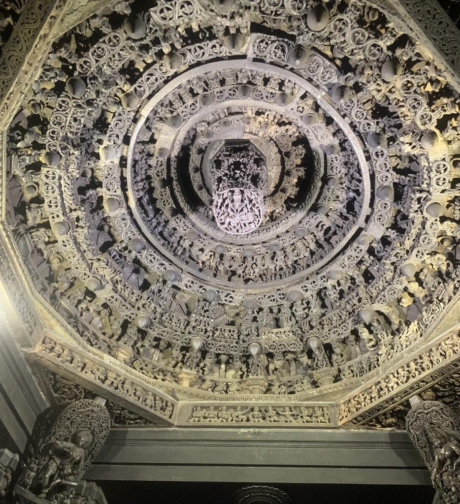 This unique complex is built with soapstone. It has four porches for entry. All temples in the Belur areas, porches are flanked by miniature shrines. As we go around the shrine, some of the finest wall panels seen are: the durbar of Lord Shiva, the childhood pranks of Balkrishna, the battle between Arjuna and Karna, Lord Krishna lifting the Govardhana Mountain, Lord Shiva in dancing pose as Nataraja, Gajendra Moksha, the shooting of Matsya Yantra; Krishna and Arjuna alighting from the chariot and taking bath in the pond after getting the news of Abhimanyu’s death and Ravana lifting the Kailasha mountain- abode of Shiva. Many of these exhibits displayed in the open-air museum and showcased in the Sculpture gallery. Both the sanctums enshrine an east facing Shivalingam, preceded by a Nandi Mandapa with huge Nandi bull. The large and spacious temple interiors are well known for carved pillars supporting the ceiling. The four sides portray the works of many wonderful sculptors. There are also a number of inscriptions of historical importance. There are many temples situated here such as Kedareshwara, Brahmeshwara, Rudreshvara, Ranganatha and Jain shrines. It takes days to properly study and go around the intricacies of our ancient history.