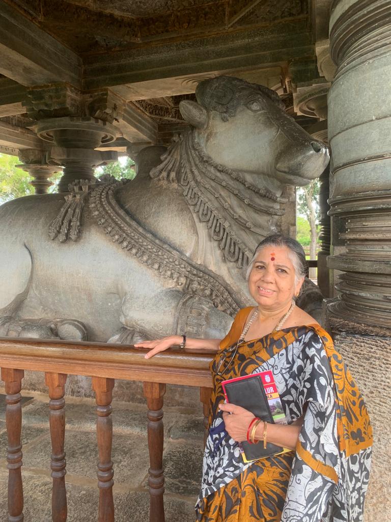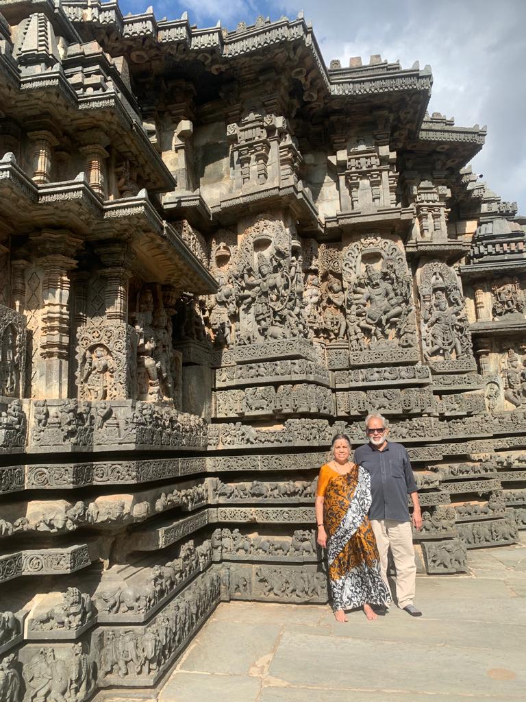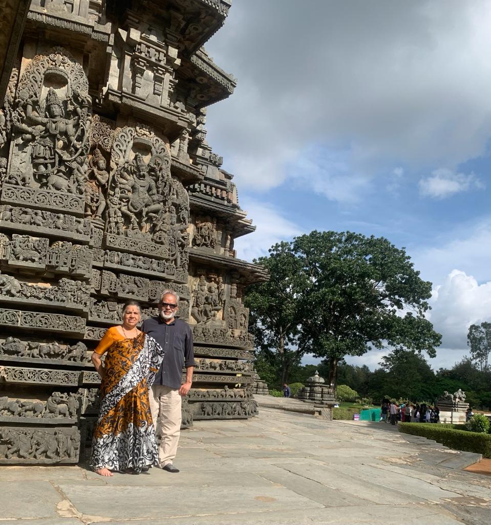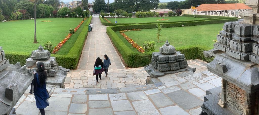 We then drove down to the world-famous sites of Halebeedu-Belur. It was also about 16 Kilometres and further away on the highway. The roads are very good and the drive too was pleasant. The whole area was kept very clean due to the recent visit of the world team from UNESCO. The important structures are restored and there was no dust or dirt, floors were spick and span, separate bins everywhere for different wastes, toilets and so on. The garden around the area was very immaculate. I felt everything looked, world-class. The recent rain and the intermittent sunrays gave a very warm welcome to everyone. Being a holiday, the place was a bit crowded.